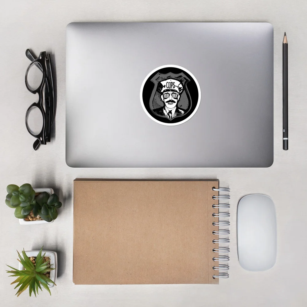 These Steve Jessup Cops Ruin Your Buzz die cut stickers are durable vinyl, perfect for indoor and outdoor use.